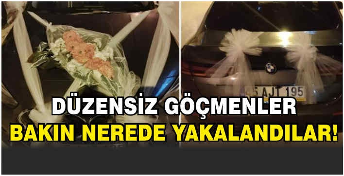 Ahmed-i Hani Mahallesi'nde gelin arabası gibi süslenen araçta arama yapan ekipler, yabancı uyruklu sürücü R.N. ile 2 düzensiz göçmeni yakaladı.