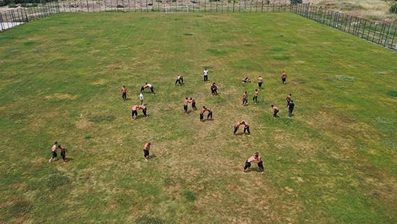 Edirne Sarayiçi Er Meydanı'nda 7-9 Temmuz'da gerçekleştirilecek 662. Kırkpınar Yağlı Güreşleri'nde başarı elde etmek isteyen pehlivanlar, organizasyona kısa süre kala antrenman tempolarını artırdı.