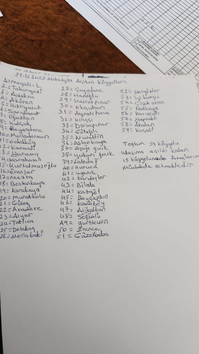 ALPARSLAN DİYARI-Malazgirt Kaymakamlığına bağlı ekiplerin yoğun ve özverili çalışmaları sonucunda bir gün içerisinde 59 köy yolu ulaşıma açıldı.