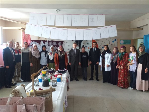 Malazgirt ilçesi Halk Eğitim Merkezi bünyesinde faaliyet gösteren Usta Öğretici Sayime Atlamer tarafından açılan kursta eğitim gören 15 köylü kızın yaptığı 4 aylık el sanatları kursunu tamamlayan 12 kursiyer el emeği göz nuru ürünlerini sergiledi.