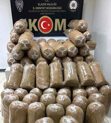 Çalışma kapsamında Adana ve Adıyaman'dan Elazığ'a gelen iki kamyonda yapılan aramada, 6 milyon 550 bin makaron ve 438 kilogram kıyılmış tütün ele geçirildi, 2 kişi gözaltına alındı.