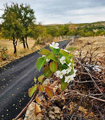 ALPARSLAN DİYARI- İlçeye bağlı Göldere köyünde bulunan armut ağacı, sıcaklıkların mevsim normallerinin üzerinde seyretmesi nedeniyle çiçek açtı.