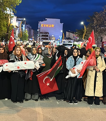 "İsrail, sokakta oynayan çocukları, kundaktaki bebekleri katlediyor, hastaneleri, masumların sığındığı okulları bombalıyor, ambulansları hedef alıyor, sağlıkçıları infaz ediyor. Bir parça ekmek için yardım sırasında bekleyen mazlumları, insani yardım gönüllülerini katlediyor. İsrail, uyguladığı ambargoyla Gazze'ye ilaç ve gıda girişini engelliyor. Su boru hatlarını bombalıyor. Kuyuları betonla dolduruyor. Bir milleti topyekun susuzluğa, açlığa, ilaçsızlığa mahkum ediyor. Dünya böyle bir vahşet yaşamadı, insanlık böyle bir zulüm görmedi. Tarih böyle bir soykırım yazmadı ve bütün dünya suskun."