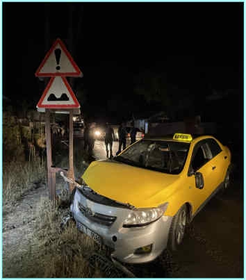 ALPARSLAN DİYARI-Sürücüsünün kimliği henüz öğrenilemeyen 23 T 0586 plakalı taksi, Yeni Mahalle Hamdi Başaran Caddesi'nde önce Feride Ç'ye ardından aydınlatma direğine çarptı.