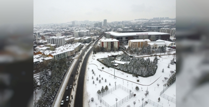 Karla kaplı parklar ve yerleşim alanları, dron ile yapılan çekimlerle havadan görüntülendi. Bu sayede, karın şehre kattığı eşsiz güzellik gözler önüne serildi.