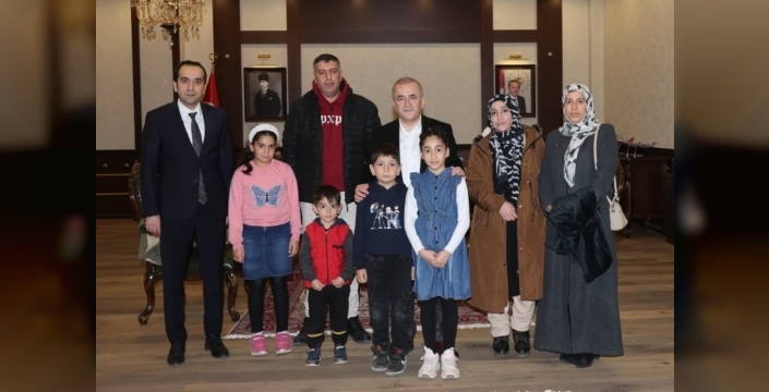 Elazığ Valisi Numan Hatipoğlu, Kovancılar ilçesinde Türk bayrağını yerden kaldıran 7 yaşındaki Azad Tatlıdilli ile 9 yaşındaki Özge Genç'i makamında kabul etti.