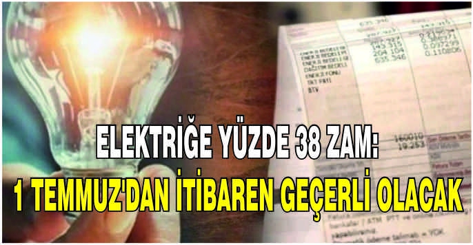 ALPARSLAN DİYARI-Elektrikte mesken kullanımına yüzde 38 oranında zam getirildi. EPDK, zamlı tarifelerin 1 Temmuz'dan itibaren geçerli olacağını duyurdu.
