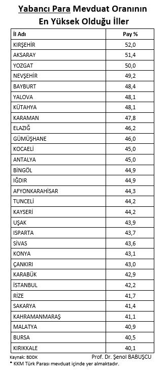 ALPARSLAN DİYARI- Bankacılık Düzenleme ve Denetleme Kurumu (BDDK) verilerine göre döviz mevduatının toplam mevduat içindeki payı en yüksek olan iller açıklandı.