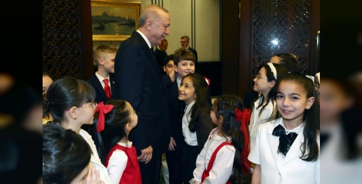 Cumhurbaşkanı Recep Tayyip Erdoğan, 23 Nisan Ulusal Egemenlik ve Çocuk Bayramı dolayısıyla Cumhurbaşkanlığı Külliyesi'nde çocukları misafir etti. Milli Eğitim Bakanı Yusuf Tekin ve beraberindeki öğrencilerle bir araya gelen Erdoğan, bayramın coşkusunu ve anlamını vurguladı.