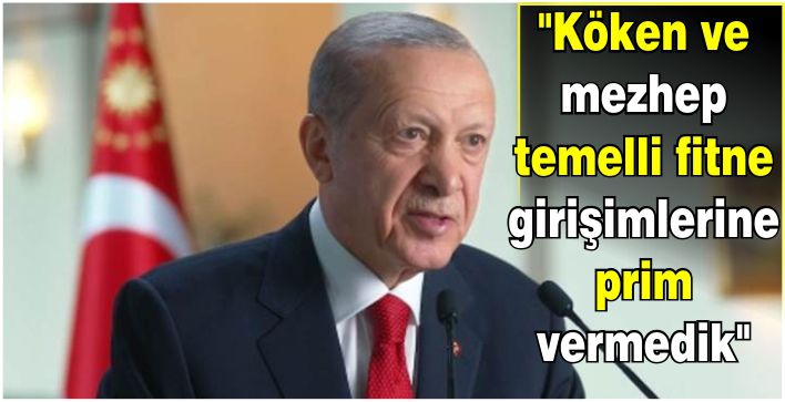 "Tarihimizin en kritik seçimlerinden birini kardeşliğimize yakışır bir şekilde demokrasi şöleni içinde gerçekleştirdik. Bu kritik süreçte, basiret ve ferasetle hareket ederek köken ve mezhep temelli fitne girişimlerine prim vermedik" diyen Erdoğan, şunları söyledi: