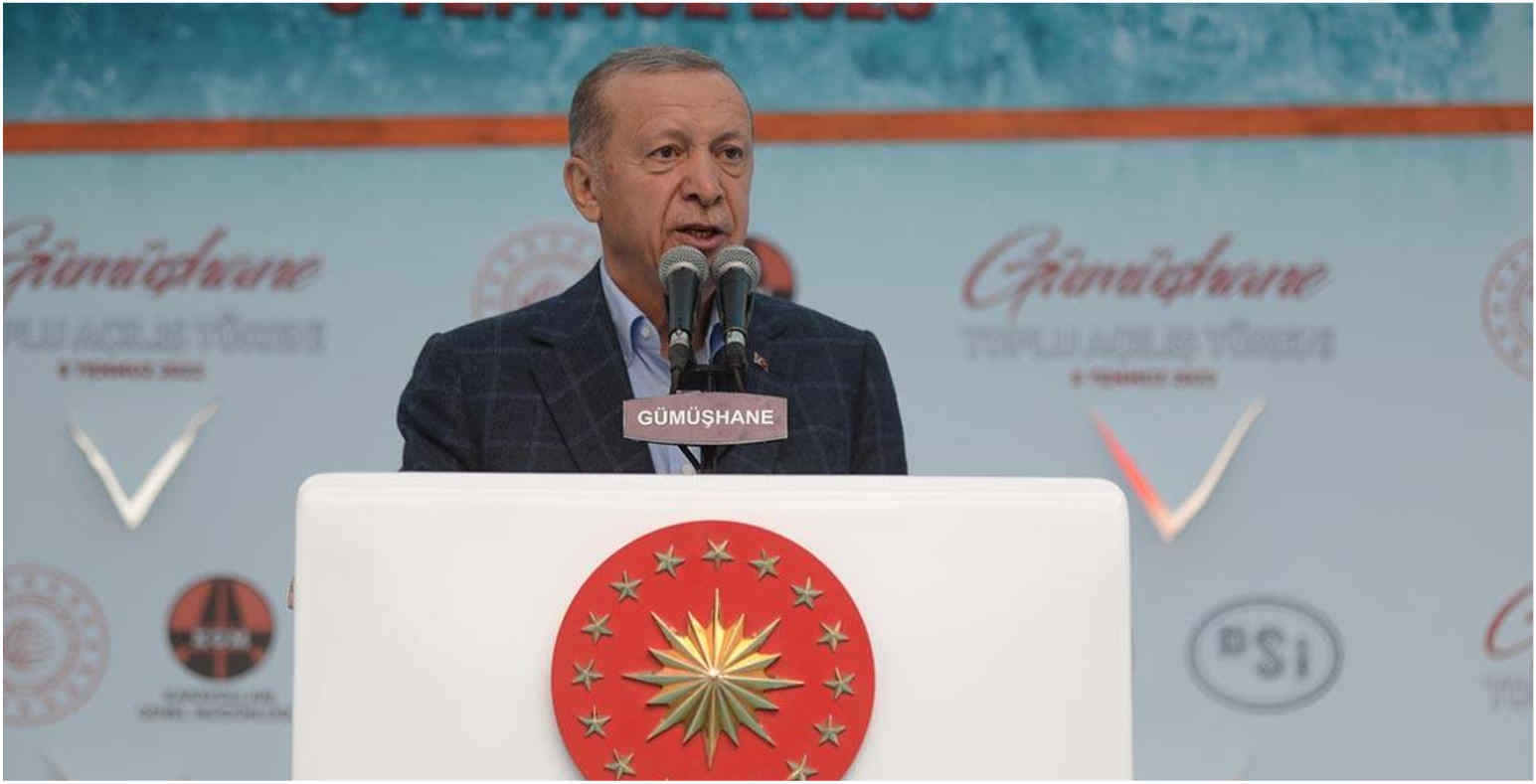 İlk turda yüzde 74,42, ikinci turda yüzde 78,54 oy aldığı Gümüşhane'ye 'teşekkür' ziyareti kapsamında düzenlenen toplu açılış törende konuşan Erdoğan, Gümüşhanelilere teşekkür etti. Atatürk Caddesi’ndeki Belediye Meydanı'nda kalabalığa hitap eden Erdoğan, kente kazandırdıkları yatırım, eser ve projeleri anlattı: