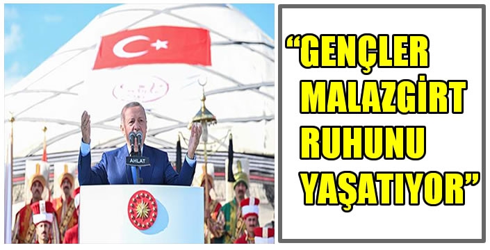 Erdoğan şöyle devam etti: “Malazgirt'in temsil ettiği değerlere sahip çıkan Ahlat halkını tebrik ediyorum. Gençlerimizi Malazgirt ruhunu yaşattıkları için kutluyorum. Demiri demirle dövenlerin aşkına şahitlik ediyoruz. Dünyaya insan hakları ve demokrasi dersi verenlerin çoğu geçmişteki ayıplarını nasıl örteceğini düşünürken biz ecdadın zaferini göğsümüzde gururla taşıyoruz.”