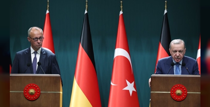 Cumhurbaşkanı Recep Tayyip Erdoğan, Almanya Başbakanı Merz’in Türkiye’ye gerçekleştirdiği ilk resmi ziyaretten duyduğu memnuniyeti dile getirerek, iki NATO müttefiki olarak ortak çıkarlar ve uluslararası meseleler üzerinde durduklarını aktardı. Erdoğan, Türkiye’nin Avrupa Birliği’ne tam üyelik sürecine vurgu yaparak, kararlı bir irade ile ilerleme kaydedilebileceğini ifade etti.