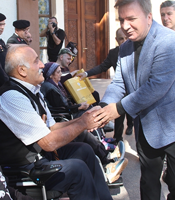 Valilik önünde düzenlenen teslim töreninde, engelliler yeni akülü tekerlekli sandalyelerine kavuştu.
