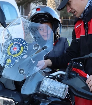 Polis ağabeyleriyle bir araya geldiği için çok mutlu olduğunu ve yunus polisi olma hayali kurduğunu dile getiren Şimşek, Vali Aydoğdu ile polislere teşekkür etti.