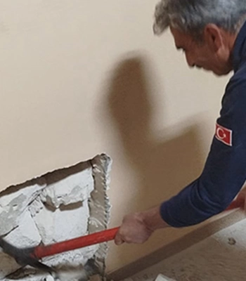 Kedinin bulunduğu yeri tespit eden itfaiye ekipleri, havalandırma boşluğunu kırarak sarkıttığı merdiven yardımıyla mahsur kalan hayvanı kurtardı.
