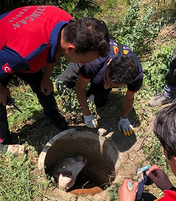 Kent merkezine bağlı Heybeli köyünde bir ineğin kanalizasyon kuyusuna düştüğünü gören vatandaşlar, 112 Acil Çağrı Merkezini arayarak yardım istedi.