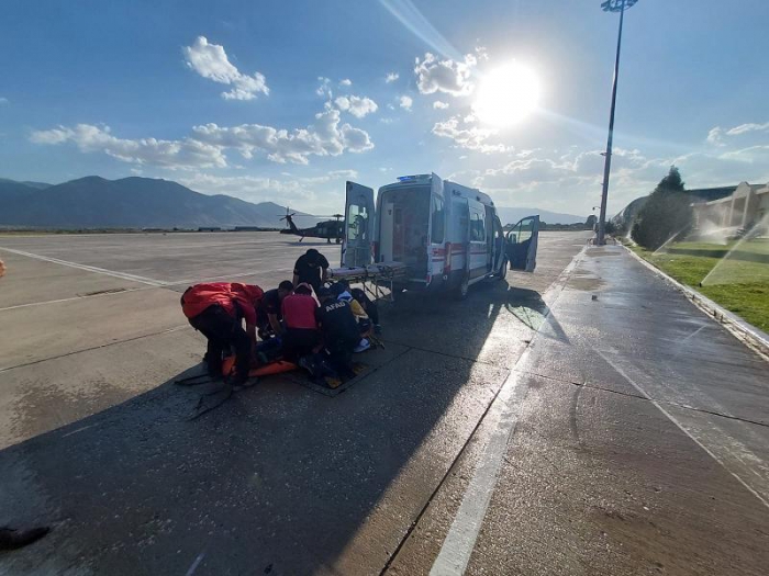 Ekipler, arazinin sarp ve kayalık olması nedeniyle yaralının daha fazla zarar görmemesi için Jandarma Komutanlığından helikopter desteği istedi.