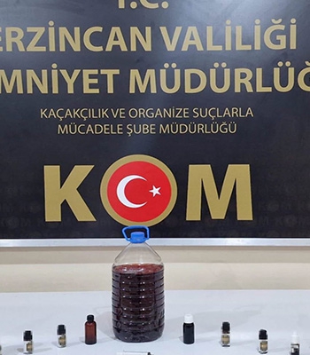 Sahte içki üretimi yaptığı tespit edilen A.K'nin ikametinde yapılan aramada, 5,5 litre sahte viski,1 şırınga ve 8 viski aroması ele geçirildi.