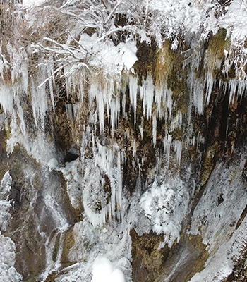 Kente 35 kilometre mesafedeki şelalede, hava sıcaklığının gece sıfırın altında 10 dereceye kadar düşmesiyle boyları 2 metreyi bulan buz sarkıtları oluştu.