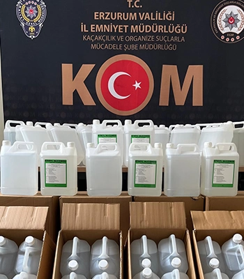 Bu kapsamda kentte Ü.Ö'nün iş yerinde yapılan aramada, 350 litre kaçak etil alkol ele geçirildi.