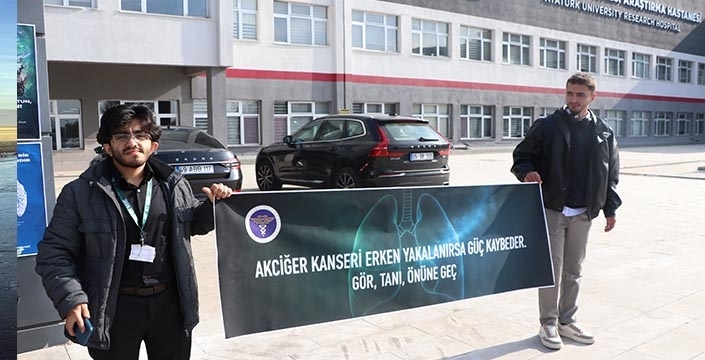 Tıp Fakültesi tarafından Akciğer Kanseri Farkındalık Ayı kapsamında Atatürk Üniversitesi Araştırma Hastanesi Başhekimlik önünde gerçekleştirilen etkinlikte, öğrenci ve akademisyenler bir araya geldi. Öğrenciler, ellerinde taşıdıkları dövizlerle akciğer kanserinin erken tanısının önemini vurguladı. Dövizlerde, "Akciğer kanseri erken yakalanırsa güç kaybeder, gör, tanı önüne geç", "Nefes al hayata tutun, kansere diren" ve "Farkında ol, erken tanı hayat kurtarır" ifadeleri yer aldı.