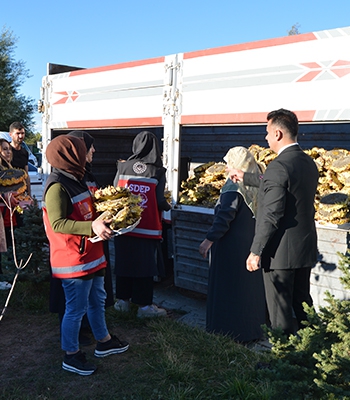 FETÖ'nün darbe girişimi sırasında Ankara'da şehit olan özel harekat polisi Yakup Sürücü'nün babası İbrahim Sürücü, hasadını yaptığı ayçiçeği çekirdeklerini ve pişirdiği mısırları kamyonla getirip çocuklara ikram etti.