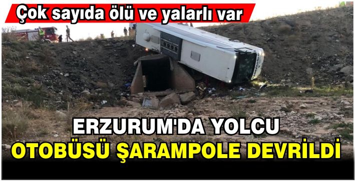 ALPARSLAN DİYARI-Horasan-Erzurum kara yolunda Salih Karademir idaresindeki 61 S 2161 plakalı Kanberoğlu firmasına ait yolcu otobüsü, Haydarlı Mahallesi yol ayrımında şarampole devrildi.