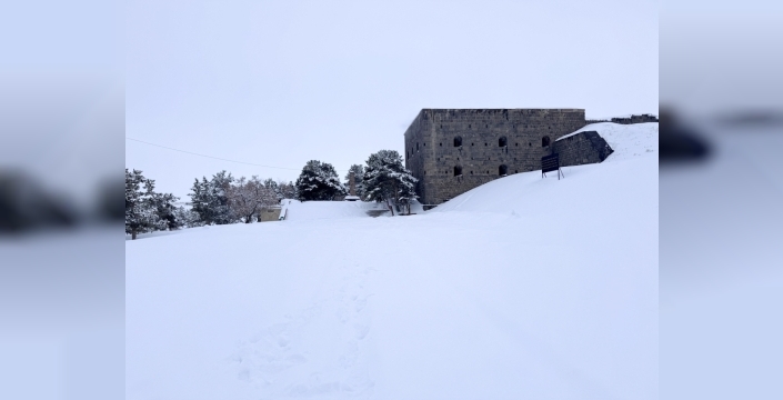 Kent merkezine 4 kilometre uzaklıkta bulunan ve içinde kahraman Türk kadını Nene Hatun'un kabrinin de yer aldığı tabyalar ve çevresi, kar nedeniyle beyaz bir manzaraya dönüştü. Bu tarihi yapı, dronla görüntülenerek karla kaplı halinin güzelliği belgelendi.