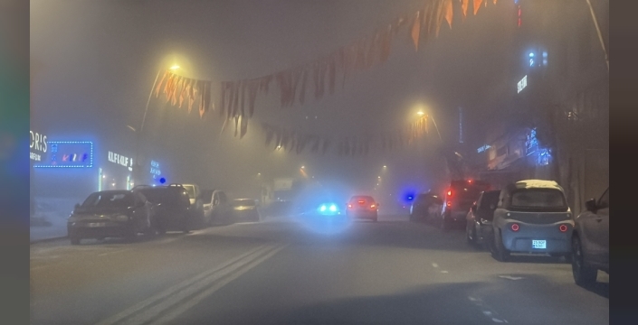 Erzurum'da akşam saatlerinde başlayan yoğun sis, kentteki yaşamı olumsuz etkilemeye devam ediyor. Sis, özellikle akşam saatlerinden itibaren etkisini artırarak görüş mesafesini tehlikeli bir seviyeye indirdi.