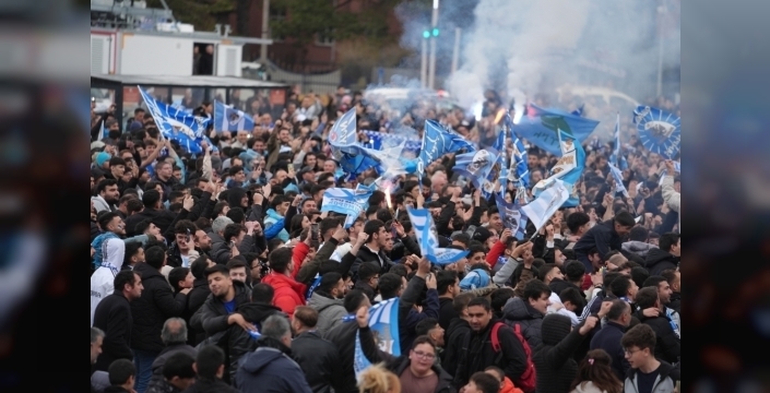 Sipay Bodrum FK-Erzurumspor FK maçını, Havuzbaşı Kent Meydanı’nda kurulan dev ekrandan izleyen taraftarlar, maçın bitiş düdüğüyle birlikte takımının Süper Lig’e yükselmesini kutlamaya başladı. Coşku içinde tezahüratlar yapan taraftarlar, sevinçlerini halaylar çekerek gösterdi.