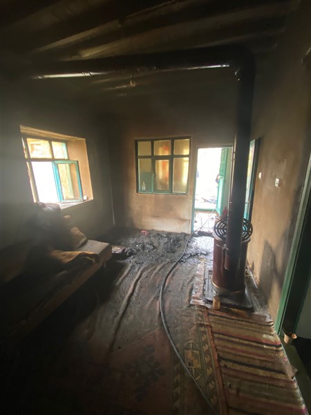 Güzelyurt Mahallesi'ndeki müstakil bir evde sobadan kaynaklı yangın çıktı.