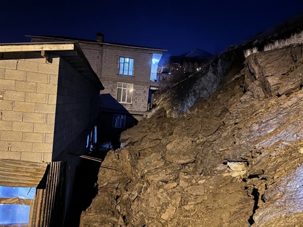 Ekipler, ev ve kayaların düştüğü bölgede inceleme yaptı.
