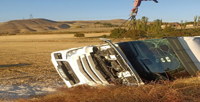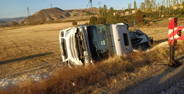 Edinilen bilgiye göre, tır şoförünün keskin virajda direksiyon hâkimiyetini kaybederek, şarampole yuvarlandı. Kazada henüz kimliği belirlenemeyen araç sürücüsü yaralandı.