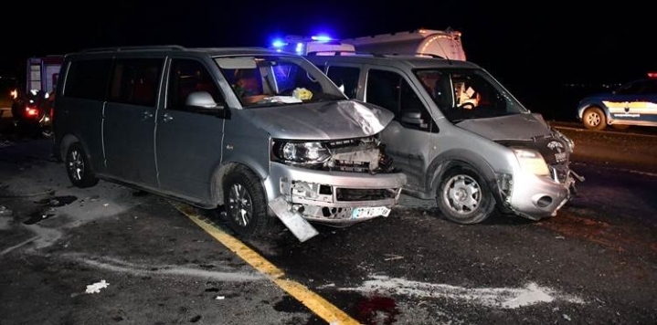 Edinilen bilgilere göre, Murat Kaya'nın (34) kullandığı 33 NRR 84 plakalı hafif ticari araç, Süleyman Özcan (34) idaresindeki 21 VG 118 plakalı minibüs ile sürücüsü henüz belirlenemeyen 01 APP 900 plakalı hafif ticari araç, Siverek-Diyarbakır kara yolunun 15'inci kilometresinde çarpıştı.