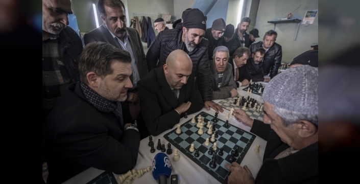 Türkiye Satranç Federasyonu (TSF) Başkanı Fethi Apaydın, Erzurum'un Yakutiye ilçesinde, 15 yıldır satranç tutkunlarının bir araya geldiği kahvehaneyi ziyaret etti.