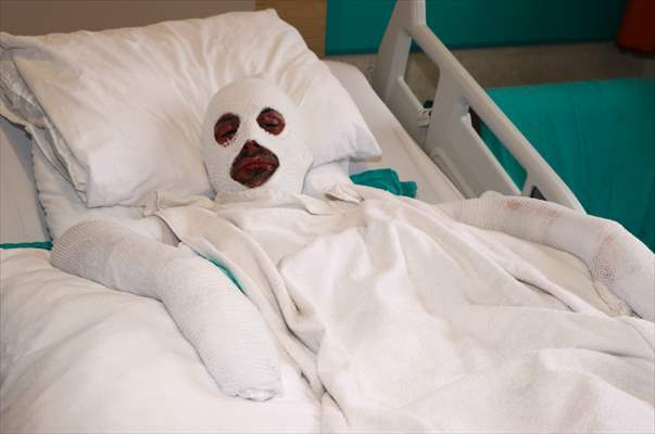 İki kolu, elleri, yüzü ve vücudunun çeşitli yerlerinde 2. derece derin yanıklar oluşan Arslan'ın merkezde tedavisine devam ediliyor.