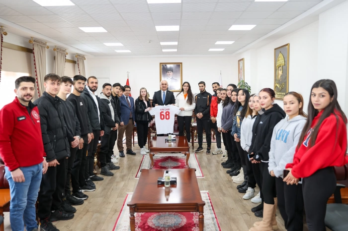 ALPARSLAN DİYARI- Ziyarette, Gençlik ve Spor İl Müdürü Mehmet Arif Taşdemir de sporculara eşlik etti. Vali Avni Çakır, sporcularla sohbet ederek takımın hazırlıkları hakkında bilgi aldı ve Muş’u en iyi şekilde temsil edeceklerine olan inancını dile getirdi.