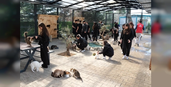 Bursa'nın Yıldırım ilçesinde, sahipsiz sokak hayvanlarının bakım ve tedavi süreçlerine dikkat çekmek amacıyla Osmangazi Gençlik Merkezi üyesi gençler, Cumalıkızık Sahipsiz Hayvan Bakımevi ve Sahiplendirme Merkezi'ni ziyaret etti.