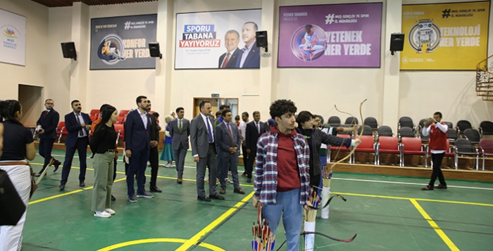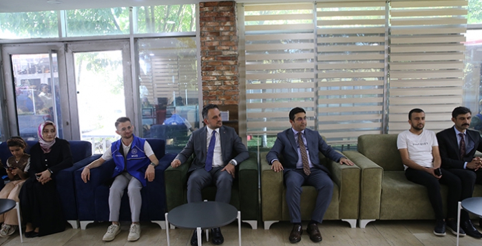 ALPARSLAN DİYARI- Ziyaretlerde bulunmak üzere Muş'a gelen Eminoğlu, Muş Gençlik Merkezi'ndeki kursları dolaştı, gönüllü gençler ve gençlik liderleriyle buluştu.