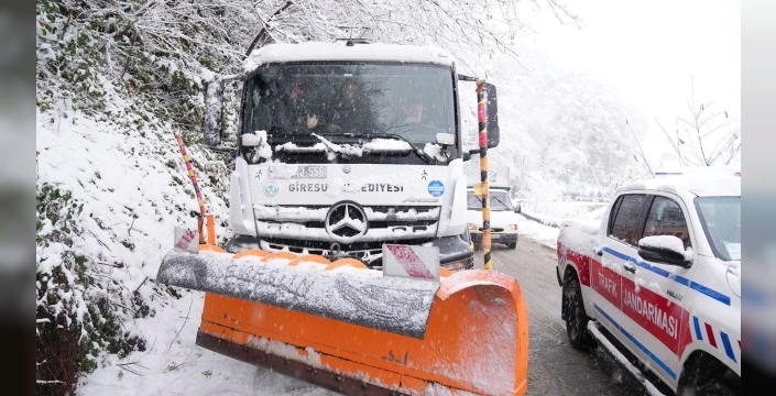 Giresun'da özellikle yüksek mahallelerde etkili olan kar yağışının ardından belediye ekipleri yoğun bir çalışma başlattı. Vatandaşların olumsuzluk yaşamaması için harekete geçen ekipler, kar yağışı başlar başlamaz sahaya indi ve gece boyunca aralıksız çalıştı.