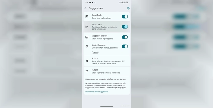 Daha önce gerçek zamanlı konum paylaşımı ve çöp kutusu işlevi gibi yenilikler sunan Google Mesajlar, şimdi de “Akıllı Yanıt” özelliğindeki büyük bir sorunu çözüyor. Uygulamanın en son beta sürümünde, kullanıcıların uzun zamandır beklediği “Göndermek/Taslak Oluşturmak için Dokun” seçeneği aktif hale getirildi.