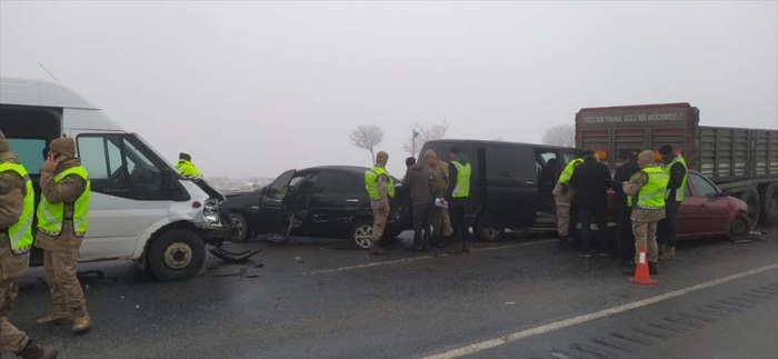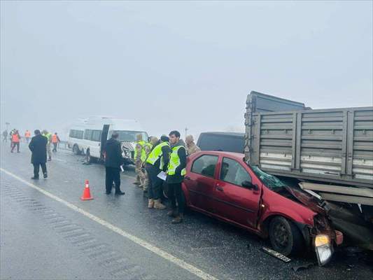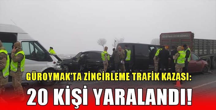 ALPARSLAN DİYARI- Bitlis-Güroymak kara yolundaki Aşağıkolbaşı köyü yakınlarında yoğun sis nedeniyle 6 aracın karıştığı zincirleme trafik kazası meydana geldi.