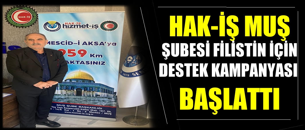 ALPARSLAN DİYARI- HAK-İŞ Muş Şube Başkanı Yaşar Kalır, Filistin ve Gazze’de Siyonist İsrail tarafından bir insanlık suçu işlendiğini, masum insanların büyük bir vahşetle karşı karşıya kaldığını belirterek, “HAK-İŞ olarak, günlerdir aç-susuz bırakılan, ilaç ve her türlü insani yardımdan mahrum bırakılan Gazzelilere ulaştırılmak üzere üyelerimizin katılımına yönelik bir yardım kampanyası başlatma kararı aldık. ‘Filistin için Haydi HAK-İŞ, Filistin’in Yaralarını Birlikte Saralım, Sen de Bağış Yap, Filistin’e Yardım Elini Uzat’ diyoruz” dedi.