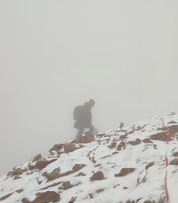 Zirveye yakın bir noktada kar yağışına yakalanana dağcılar, kar ve soğuk havaya rağmen 4 bin 135 rakımlı Cilo Dağı Reşko Tepesi'ne ulaştı.