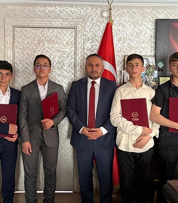 ALPARSLAN DİYARI- İl Müftülüğünden yapılan açıklamaya göre, Ahmed-i Hani Yatılı Kur'an Kursu'nda hafızlık eğitimini tamamlayarak hafızlık tespit sınavında başarılı olan 7 öğrenciye İl Müftüsü Hüseyin Okuş tarafından belgeleri takdim edildi.