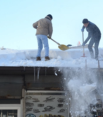 Sabri Ören ise "Çok kar var. Çatılar, çökerse zarar verebilir. Bunun önüne geçmeye çalışıyoruz." dedi.