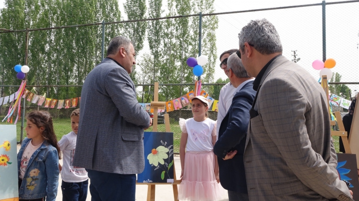 Yapılan sergide büyük bir emeğin olduğunu ifade eden İlçe Milli Eğitim Müdürü Necdet Bozyel, “Bugün burada bulunmamızın sebebi, ilçemiz Mehmet Akif Ersoy İlkokul öğrencilerimizin ve öğretmenlerinin hazırladığı resim sergisinde bir araya gelmekti. İlçe Halk Merkezi bünyesinde açtığımız kurs üç aylık bir süre sonrasında çok ciddi bir emek ortaya çıktığını gördük. Bugün burada yağlı boya, guaj boya, Kuru kalem çalışmasını çok güzel bir şekilde sergilemişler. Şimdiki küçük çocuklarımızın ileri zamandaki büyük yetenekleri şeklinde görebiliriz. Sergide emeği geçen öğrenci ve öğretmenlerimizi tebrik ediyorum” ifadelerini kullandı.