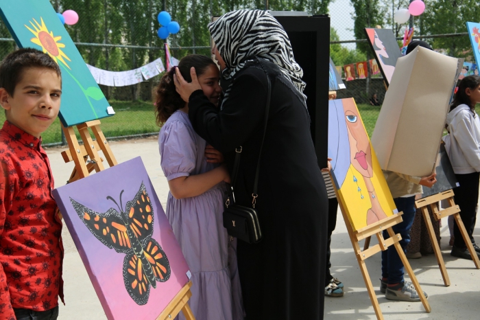 Sergiye katılan öğrenci velilerinden Gülbahar Onay ise “Bugün çocuklarımızın resim sergisine geldik. Okula teşekkür ederiz, öğretmenlerine teşekkür ederiz. Sergi çok güzeldi. Maşallah küçük çocuklara, çok güzel resimler yapmışlar” dedi.