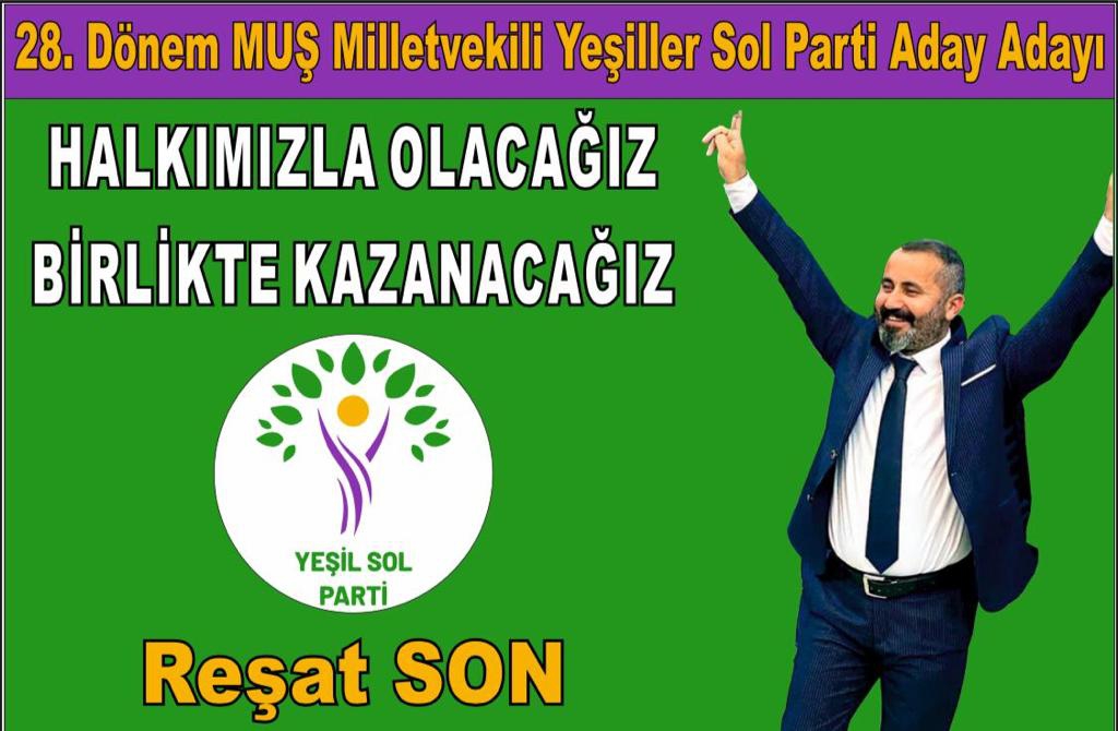 İstanbul’da ikamet eden Başarılı İş İnsanı Reşat Son Yeşil Sol Parti'den Muş milletvekili aday adaylığını açıkladı.